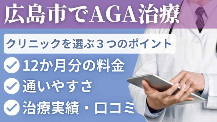 ここでは、AGA治療で後悔しないためにクリニックを選ぶ3つのポイントを紹介し、広島市のクリニックを比較していきます。