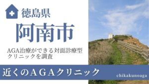名西郡内にはAGA治療に対応しているクリニックは確認されておらず、近隣の吉野川市に1院、さらに徳島市には「ただつクリニック」「徳島検診クリニック」など多数のAGA治療クリニックがあります。